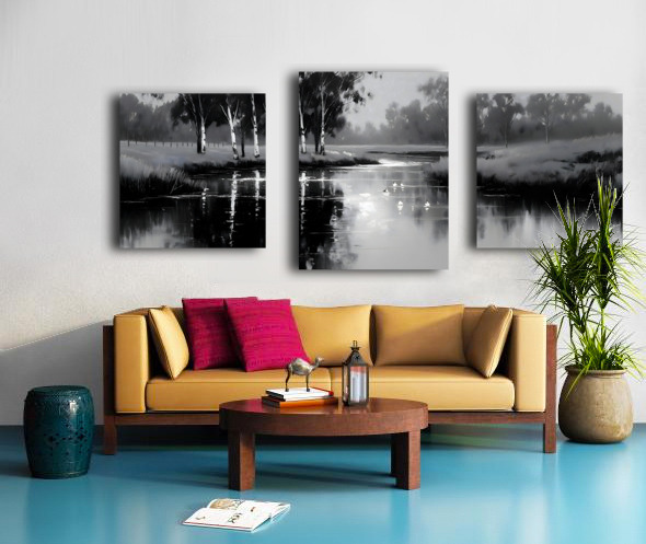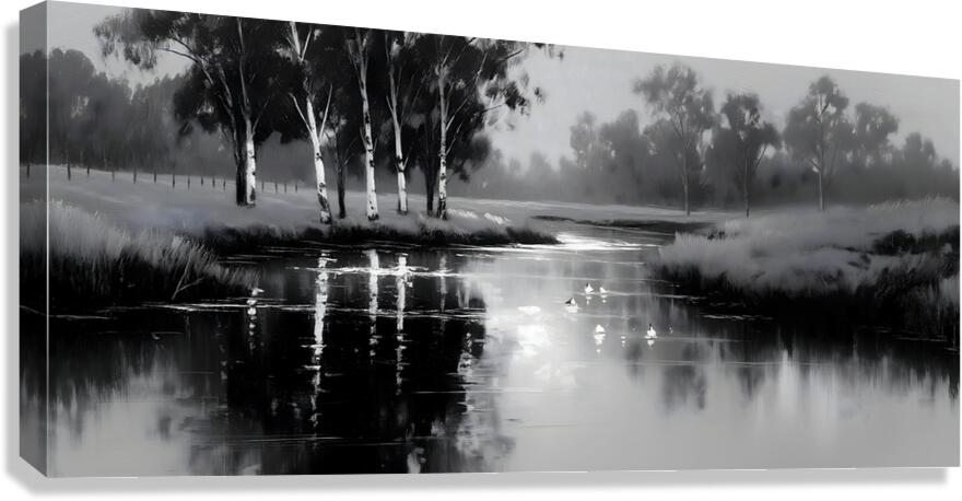 By the Riverbank - Monochrome Landscape Art Prints Impression sur toile