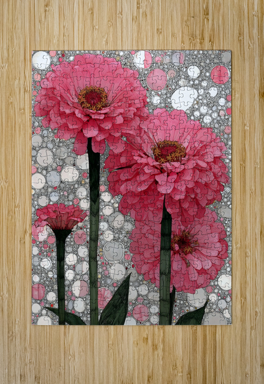 Bloom in Circles – Pink Zinnia Floral Abstract Print Savage Art Prints Puzzle