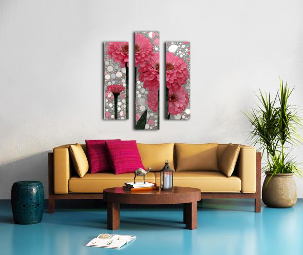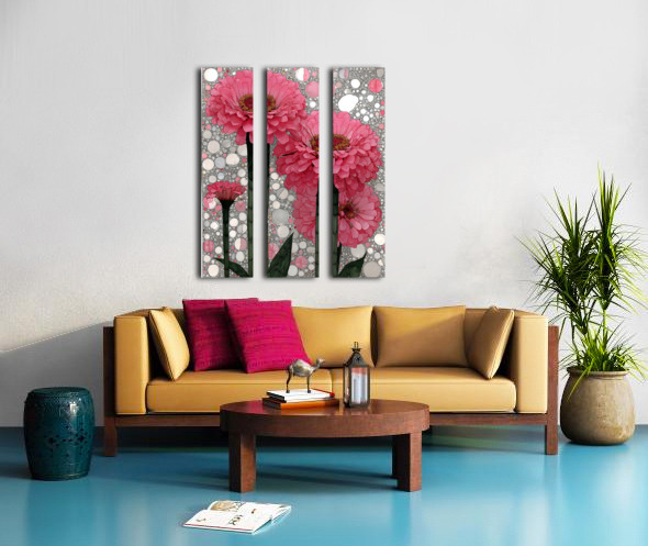 Bloom in Circles – Pink Zinnia Floral Abstract Print Impression sur toile
