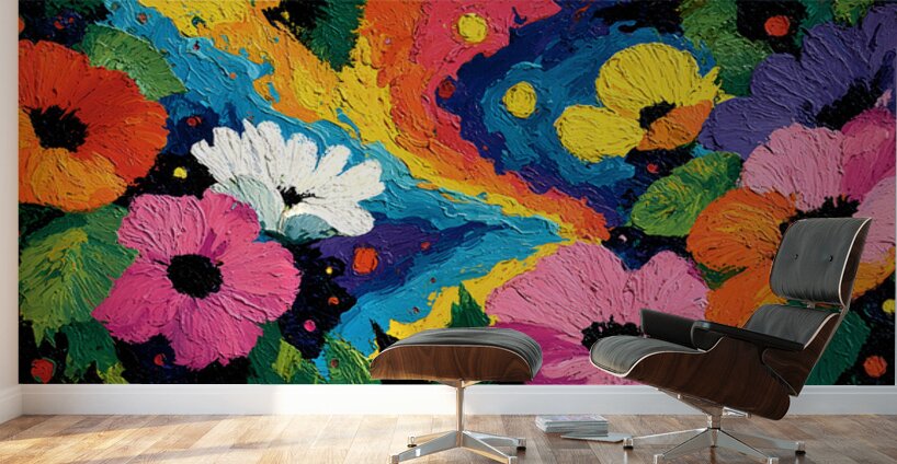 SUR CETTE OEUVRE: IMPASTO CARNIVAL – THICK PALETTE KNIFE FLORAL PRINT