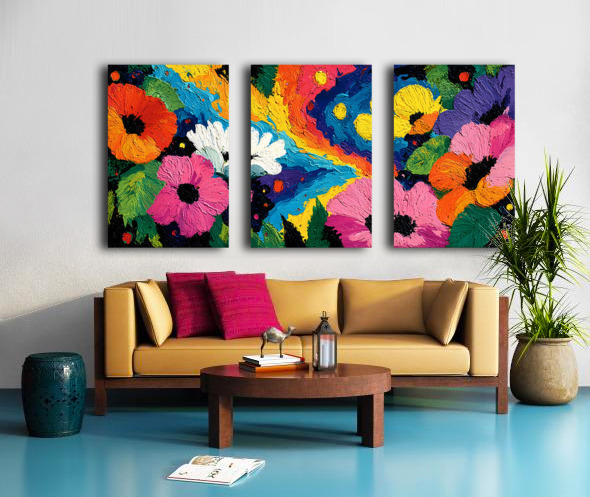 Heavy palette-knife strokes lay down petals and pigment in a chorus of saturated magentas, tangerines, and teal accents — the surface reads like freshly finished oil, full of motion and dimension. “Impasto Bloom Burst” is designed to feel like a studio original while offering the durability of museum-grade printing, perfect above a fireplace, pooled over a dining table, or as a dramatic entryway piece. Select museum canvas for velvety depth and visible texture; choose HD metal for mirror-bright color and modern sheen; or acrylic for a luminous, museum-style presentation. Archival inks and custom sizing ensure your print keeps its punch for years. Curated by Savage Art Prints.