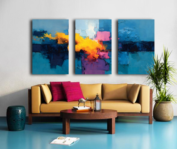 Weathered planes of oceanic blue stack and step toward a radiant seam of molten gold, where sky meets water in a minimalist horizon. The interplay of hard edges and soft reflections creates a calm, architectural presence that grounds modern coastal and urban interiors alike. Hang over a console, dining table, or sofa for a sophisticated focal point. Available as matte canvas for tactile depth; HD metal for crisp detail and vivid glow; acrylic for glass-like brilliance; or framed fine-art paper for a refined, low-glare presentation. Archival inks and premium materials ensure gallery quality in custom sizes. Curated by Savage Art Prints.