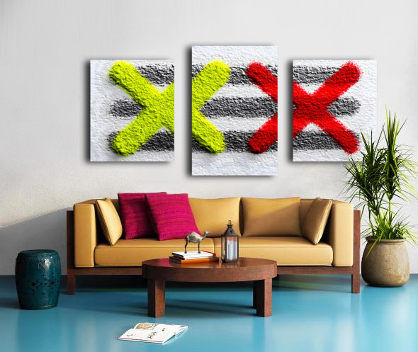Three chunky, paint-textured X’s—lime, crimson, and chartreuse—line up like playful signals on a clean field. “Signal Marks” is graphic, readable, and modern, bringing a wink of pop culture to hallways, game rooms, and design studios. Its tactile edges and saturated pigments keep the piece lively up close while the simple geometry reads boldly from afar. Choose canvas for soft matte presence, HD metal for a slick gloss, acrylic for luminous depth, or framed fine-art paper for a crisp, gallery look. Archival materials and custom sizes ensure a premium finish. Curated by Savage Art Prints.