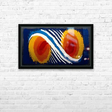 Two radiant orange forms pulse against a deep, saturated backdrop in “Tangerine Twins.” The composition nods to retro poster design while staying ...[+]