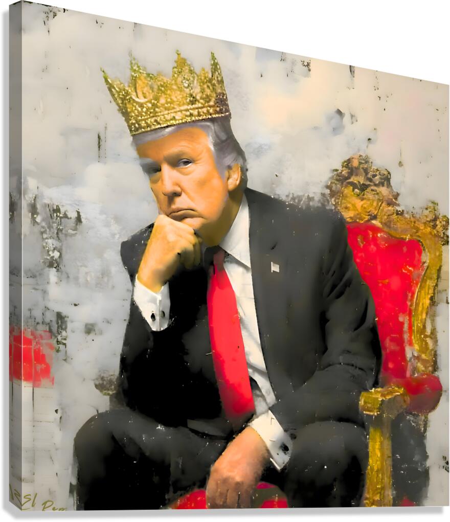 EL REY – Limited Edition Satirical Portrait Print Edition: 47 prints only Size available: 42x42 - 48x48 - 55x55 Format: Roll Print (unframed) Paper/Print: Premium acid-free giclée on photo satin poster paper (archival pigment process) Shipping: Worldwide — rolled and packed in a strong mailing tube Description El Rey (“The King”) is contemporary satire—an image about power, spectacle, and how leaders are staged, not a claim of monarchy. It nods to “No Kings” rallies and invites reflection rather than verdict. Trump isn’t a king, and the artwork doesn’t suggest he wants to be. This is a strictly limited edition of 47. They print when they're ordered. When they’re gone, they’re gone. Printed as a museum-grade giclée on premium acid-free photo satin poster paper, the surface shows rich tone and texture and is excellent for display. Signature Moment: This giclée is the ultimate signature piece—the kind of image that would stop anyone in their tracks. If you ever crossed paths with DJT, there’s a real chance he’d pause to look; the satin surface also takes paint pens and markers beautifully. No endorsement is implied, and we can’t guarantee signatures or appearances—but this edition is built for that once-in-a-lifetime moment. Ships unframed as a roll print, worldwide, secured in a heavy-duty mailing tube to protect edges and surface in transit. Collector’s Note: Once the last number is claimed, the edition closes—no reprints, no second runs. If El Rey belongs in your collection, secure your number now. Curated by Savage Art Prints