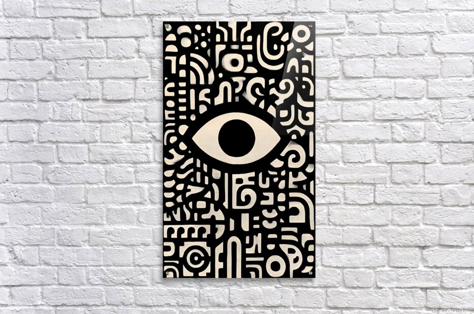 Eye in the Code – Abstract Symbolism Print features a central, piercing eye emerging from a whirlwind of abstract symbols, icons, and distorted letters on a stark black background. The design blends digital-age motifs like RSS feeds and circuit-like shapes with organic swirls, creating a sense of hidden messages and watchful intrigue—ideal for those who appreciate cryptic narratives, tech-inspired aesthetics, or bold, thought-provoking abstract art. This artwork is available as a giclée canvas print for rich color and painterly depth, a premium acrylic print for a sleek, gallery-style sheen, and smooth white metal or brushed aluminum pieces for a contemporary edge. You can also choose high-definition sublimatable metal for maximum contrast, a peel-and-stick mural to turn an entire wall into a symbolic realm, framed wall art for a ready-to-hang centerpiece, fine art paper prints for a classic, collectible presentation, warm wood prints that echo minimalist decor, multi-panel layouts that expand the code across larger spaces, or puzzle prints for anyone who wants to decode the mystery one piece at a time. Curated by Savage Art Prints.