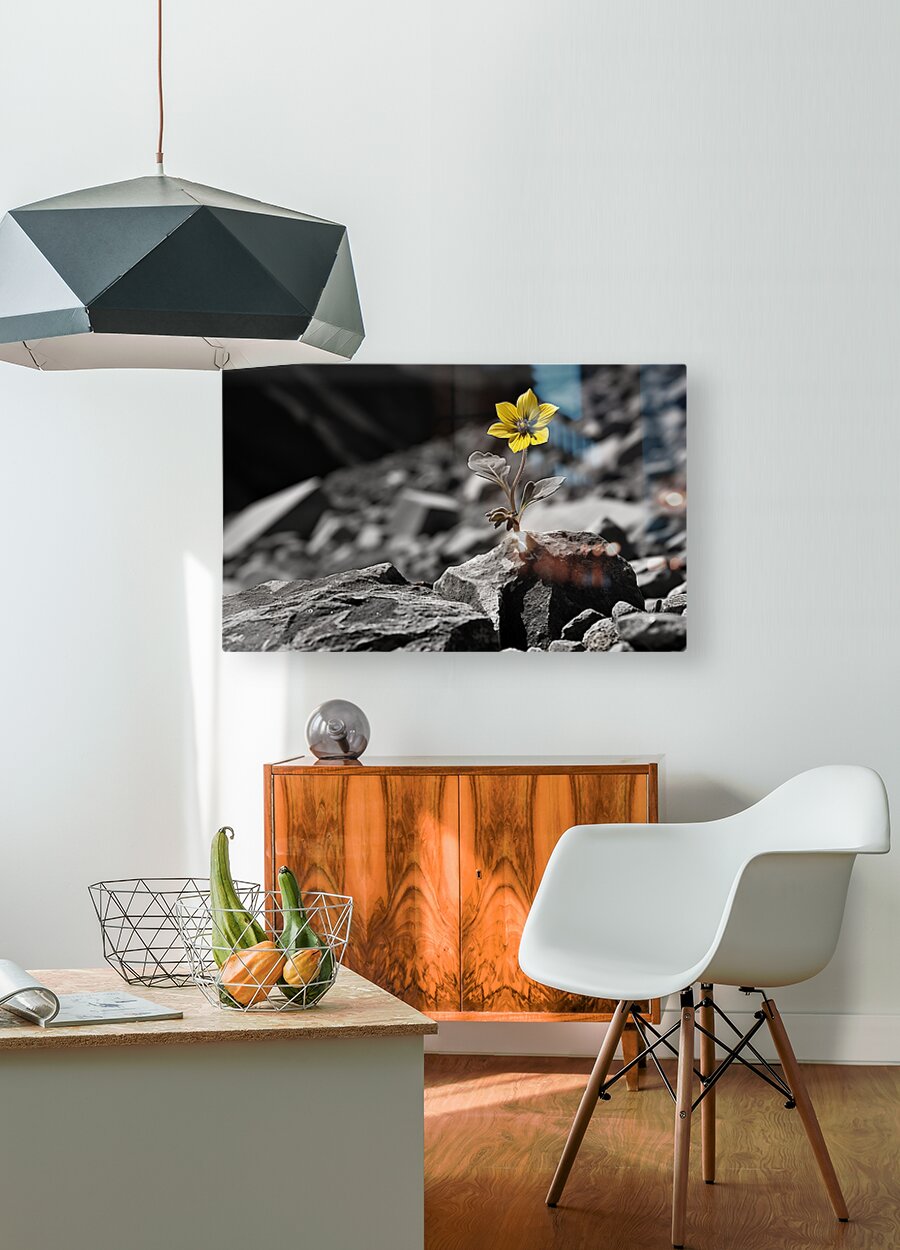Resilient Heart – Yellow Flower Among Stones Print Impression sur toile