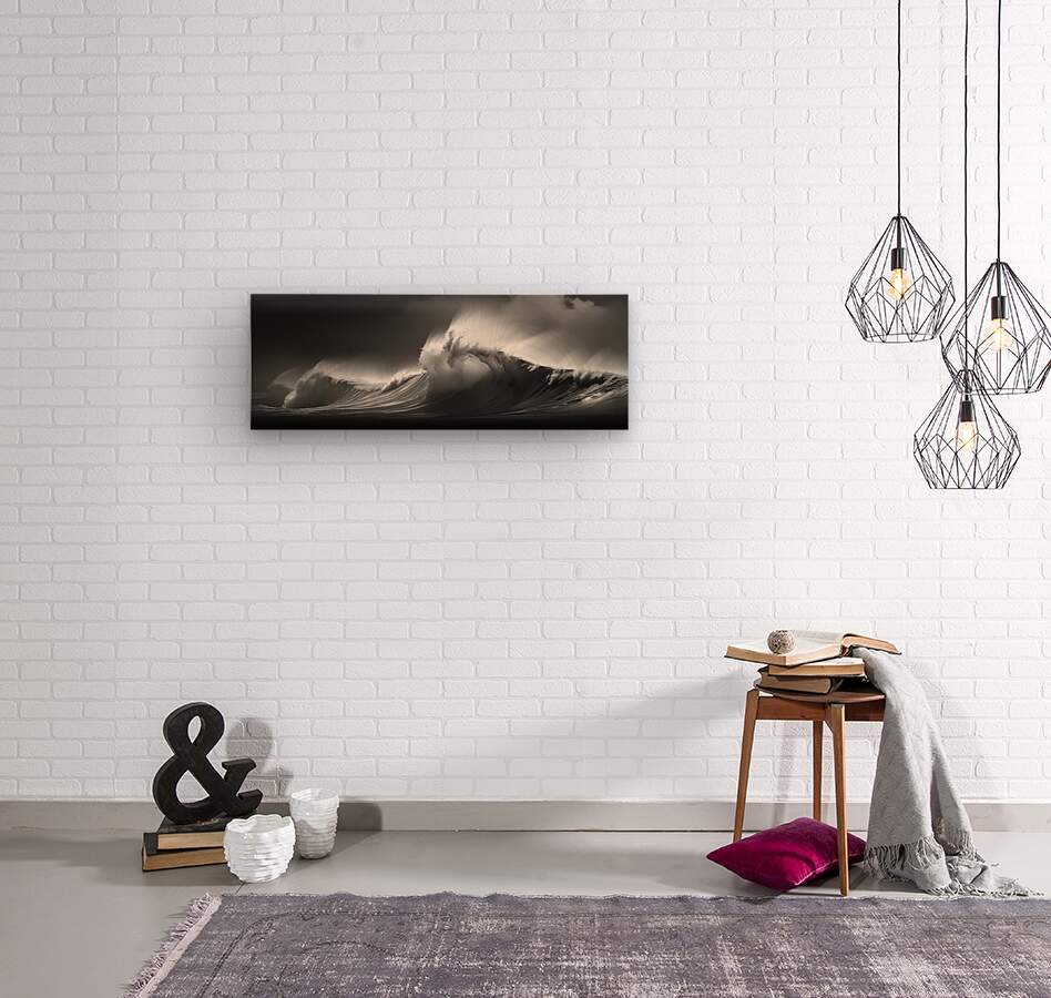 Silver Breaker – Black & White Ocean Wave Print  Impression sur bois