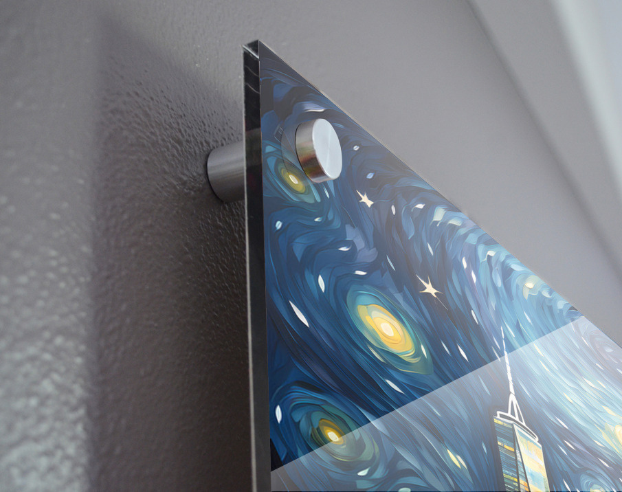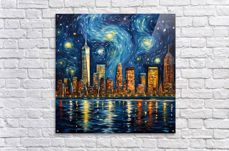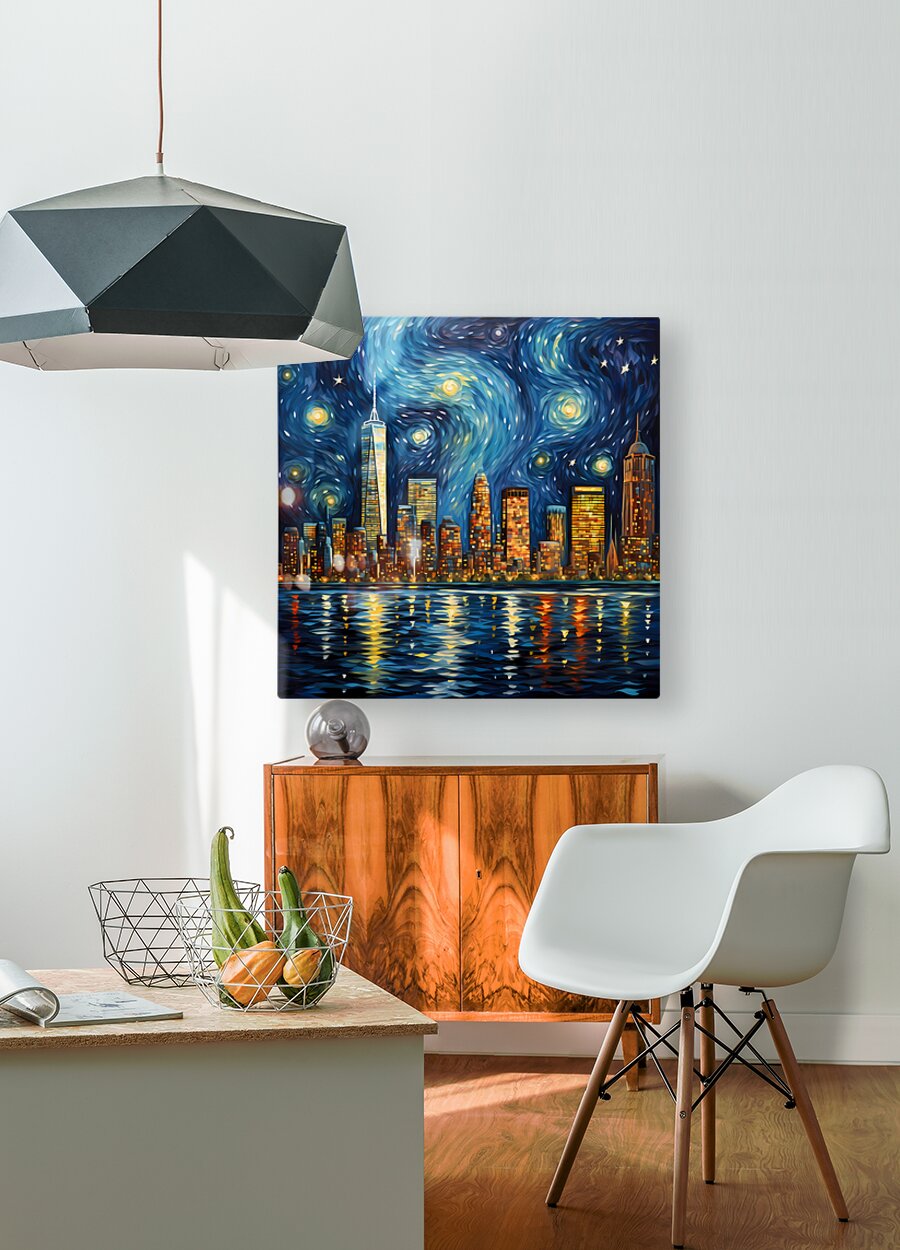 “Starry Night Skyline” is a luminous fusion of Van Gogh's swirling celestial vision and the iconic cityscape of New York. This captivating piece reimagines the glowing skyline with rich, painterly textures and dynamic brushstrokes dancing through a star-strewn night sky. A luminous skyline sits beneath a whirling, star-streaked sky—city grit meets dream logic. “Starry Night Skyline” adds color and wonder to lofts, offices, and playful living rooms, giving you a crisp silhouette below a kinetic, painterly heavenscape. Choose canvas for velvety matte tactility; HD metal for mirror-gloss brilliance; acrylic for glass-clear depth and a floating feel; or framed fine-art paper for a classic, low-glare finish. Printed with archival inks on premium materials in custom sizes, ready to hang or frame. Curated by Savage Art Prints.