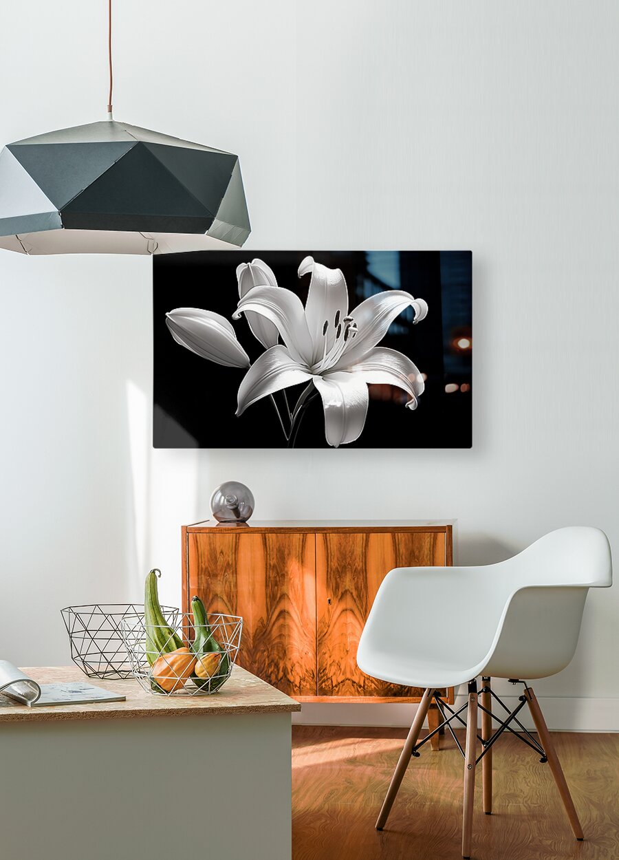 A luminous lily opens against velvet dark—simple lines, graceful arcs, and a quiet glow. “Lily Of The Light” adds refined drama to bedrooms and ...[+]