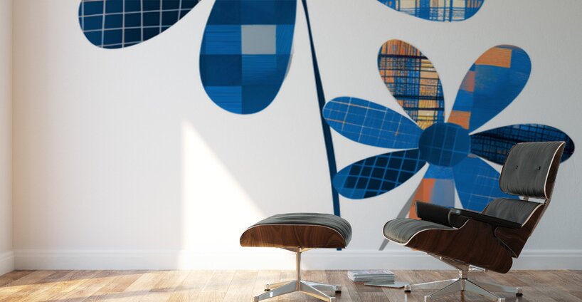 Cool-toned blooms rise on a crisp plaid backdrop—fresh color anchored by clear geometry. “Plaid Botanica 16” adds lift to neutral rooms and hall...[+]
