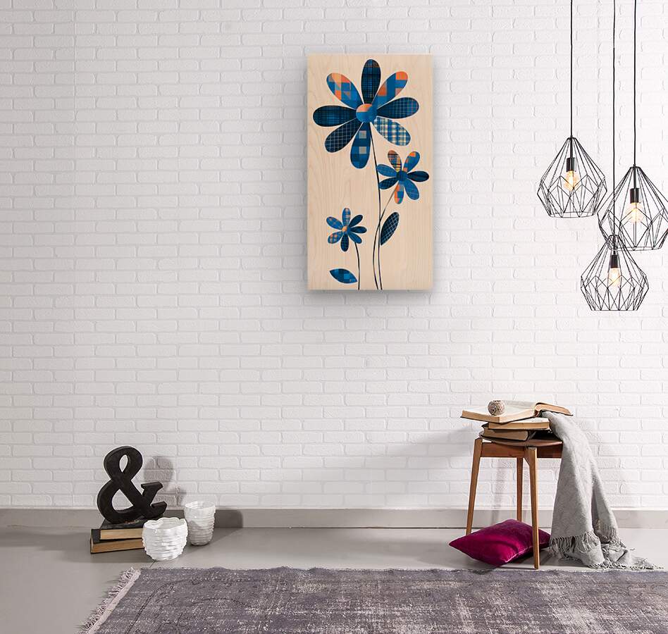 Plaid Botanica 16 - Graphic Floral Art Prints  Wood print