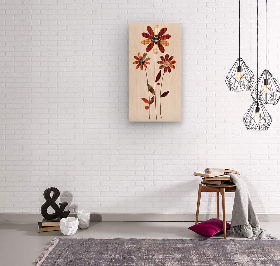 Plaid Botanica 19 - Modern Retro Floral Art Prints  Wood print