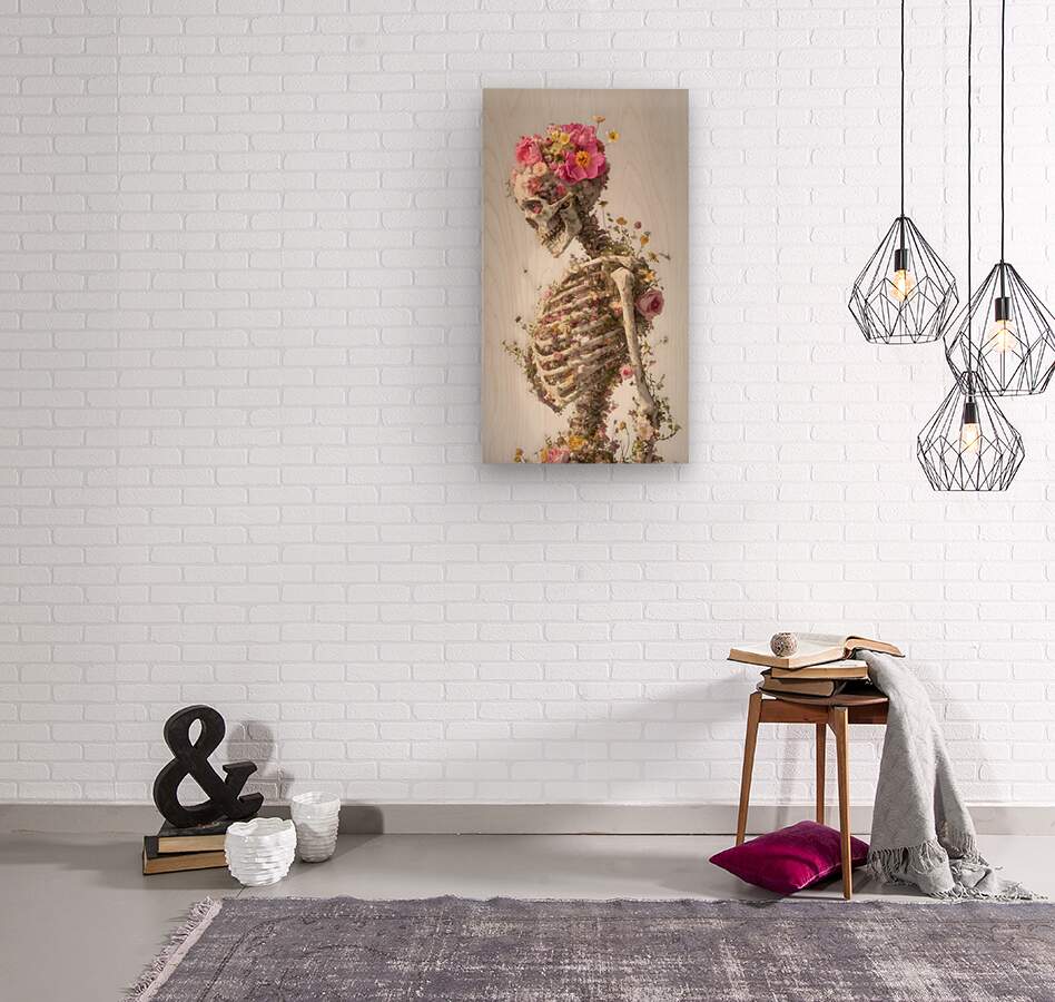 La Vita Dopo La Morte - Life After Death - Floral Skeleton Art Prints  Wood print