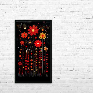 A midnight garden of stylized blooms rises on dotted stems—crisp geometry meets saturated color. “Geometric Garden” is built to punch up neutral rooms, hallways, and dining areas without feeling busy. The black field makes reds and oranges glow while keeping the overall look clean and modern. Choose canvas for a matte, tactile finish; HD metal for glossy brilliance; acrylic for glass-clear depth and a floating presence; or framed fine-art paper for a classic, low-glare look. Printed with archival inks on premium materials in custom sizes, ready to hang or frame. Curated by Savage Art Prints.