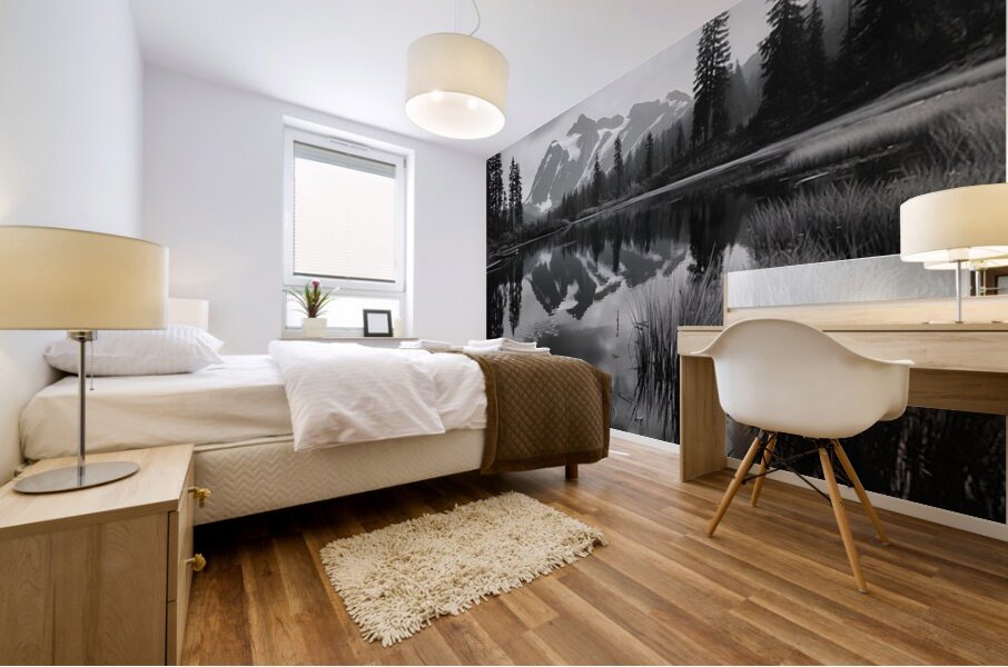 Reflections Of The Wild - Monochrome Landscape Art Prints  Wood print