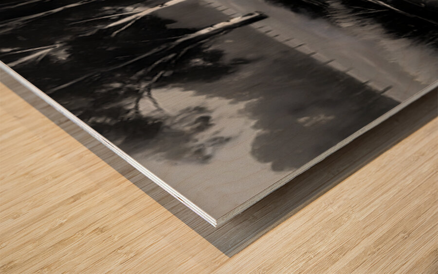 By the Riverbank - Monochrome Landscape Art Prints  Wood print