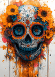 Marigolds ring a radiant skull—color for days, balanced by crisp shapes so it stays readable and modern. It’s an easy conversation piece for livin...[+]