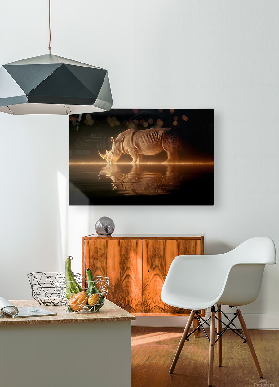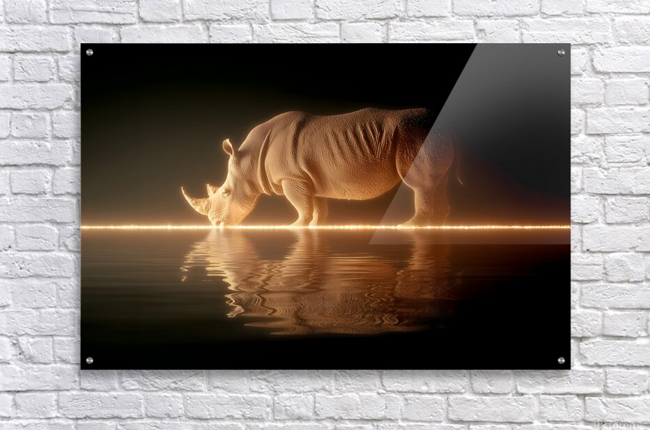 Luminous Giant captures the quiet majesty of a rhinoceros pausing at the water’s edge, its form bathed in golden light that mirrors across a perfectly still surface. This artwork transforms raw strength into poetic stillness, balancing power and peace in a glowing interplay of texture, reflection, and light. Every ripple, curve, and contour is rendered with surreal precision, creating a cinematic moment frozen in time. Designed for modern interiors that celebrate strength, resilience, and balance, this premium giclée print glows with elegance and emotional gravity. Ideal for living rooms, offices, and gallery-inspired spaces, its dramatic tones and soft reflections elevate any collection. Available in canvas, HD metal, acrylic, wood, or archival paper formats—each crafted to preserve the luminous depth and tactile realism of this breathtaking composition. Curated by Savage Art Prints