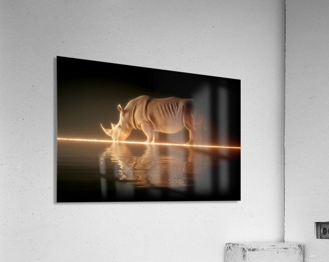 Get this artwork "Luminous Giant – Rhinoceros Reflection Print" in a framed print.