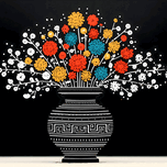A bouquet becomes graphic sculpture—clean shapes, bright pigments, and a dark ground that makes the color sing. This print drops instant cheer into ...[+]
