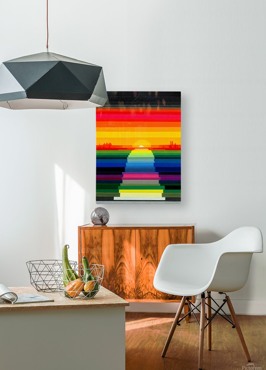 A rainbow stairway descends toward a glowing horizon, blending retro-digital stripes with a calm, symmetrical layout. The color story is bold but tidy, so it lands as a modern statement rather than noise. Great for living rooms and media spaces, and a mood boost for offices, studios, and entryways. Choose canvas for warm matte texture, HD metal for glossy saturation and crisp lines, acrylic for glass-like depth, or framed paper for a classic, low-glare finish. Produced with archival inks on premium materials and offered in custom sizes to nail the perfect proportion. Curated by Savage Art Prints. Printed with premium archival inks on your choice of high-quality materials including stretched canvas, acrylic, metal, HD metal, wood, murals, framed prints, and roll prints. Multiple sizes and custom framing options available to perfectly fit your vision.