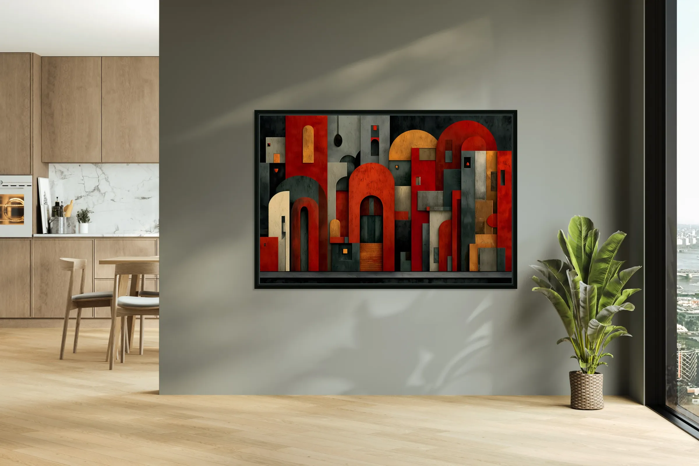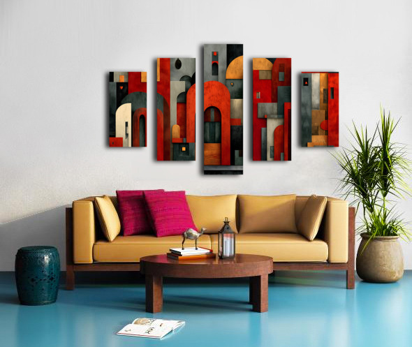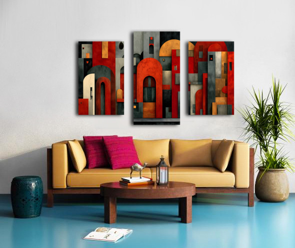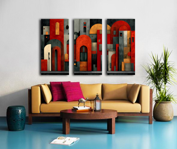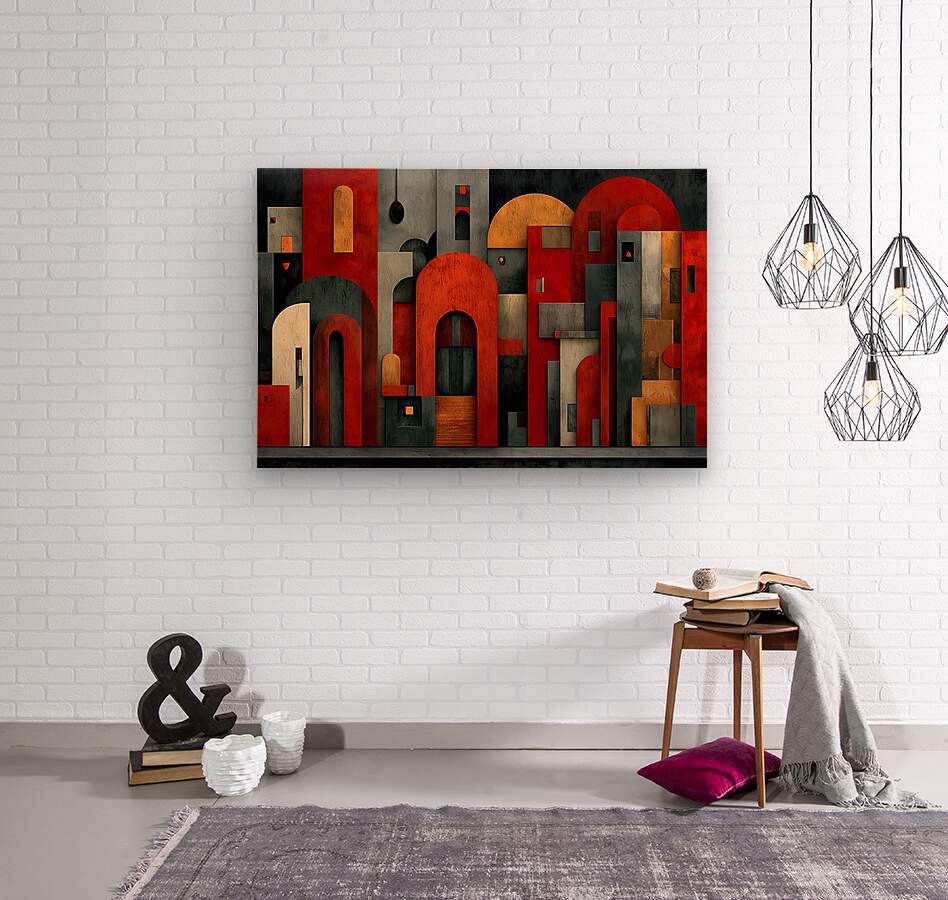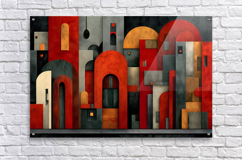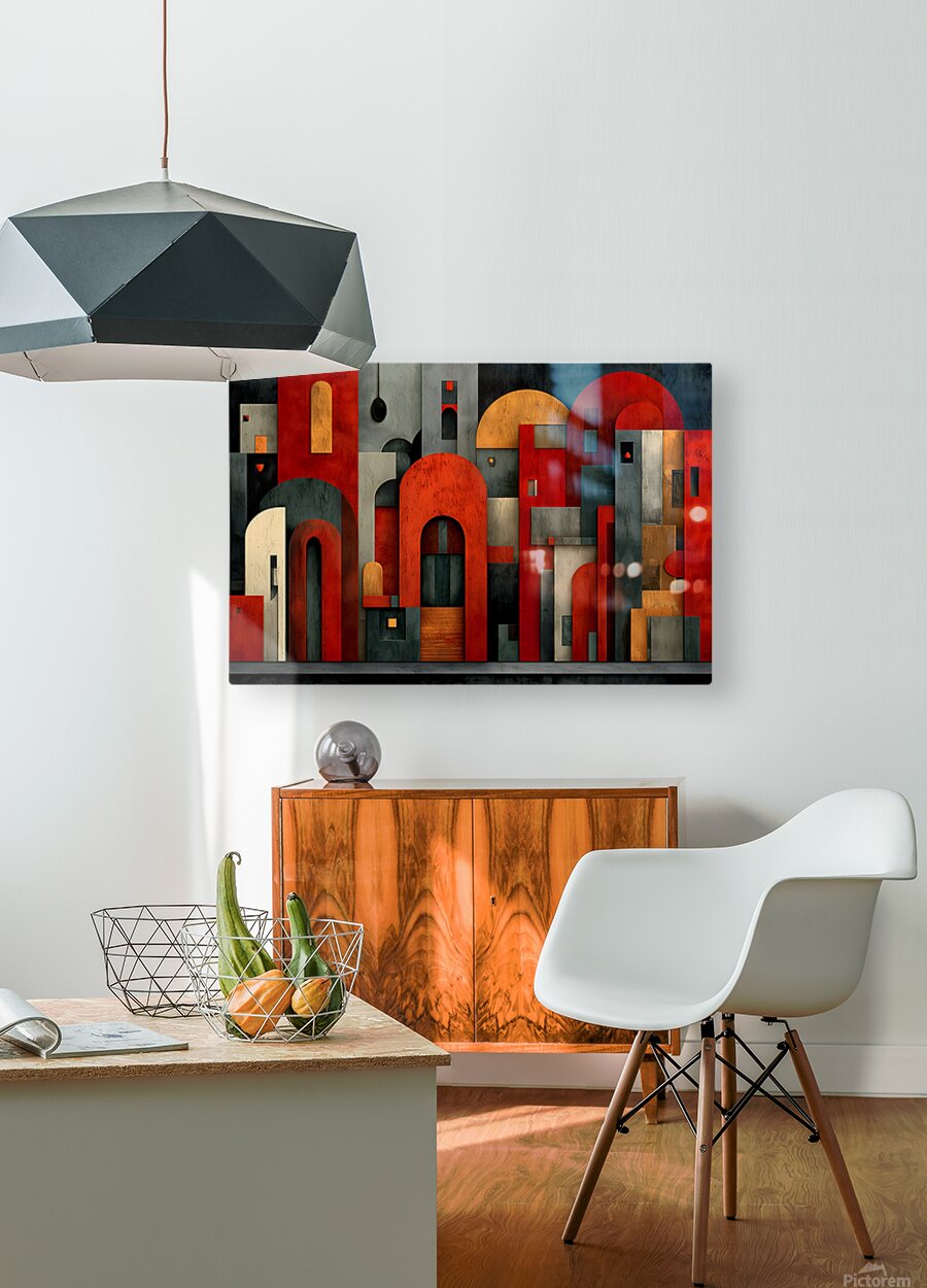 Stacked forms, archways, and clean lines distill architecture into a graphic cityscape of reds, charcoals, and muted neutrals. The composition balances structure and play, giving contemporary rooms a smart focal point that pairs well with metal, concrete, and wood. Hang it above a sofa, console, or workspace where orderly energy sets the tone. Choose canvas for matte tactility, HD metal for glossy snap and fine edges, acrylic for glass-like depth, or framed paper for a classic, low-glare presentation. Printed with archival inks on premium materials, available in custom sizes to match your wall. Curated by Savage Art Prints.