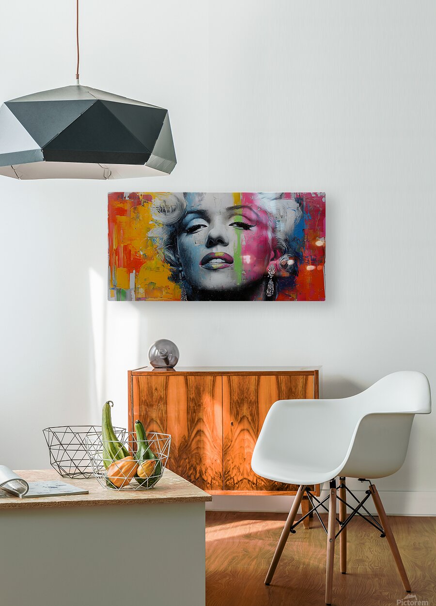 A platinum-haired icon fills the frame—half-lidded gaze, luminous lips—while bold bands of hot pink, lime, and sun-gold slice through the monochrome face. This Marilyn Monroe pop portrait blends billboard impact with painterly texture, landing as a confident focal point for lounges, studios, and fashion-forward living rooms. Choose canvas for a matte, tactile presence; HD metal for glossy punch and razor detail; acrylic for glass-like depth and a floating look; or framed fine-art paper for a classic, low-glare finish. Printed with archival inks on premium materials in custom sizes, ready to hang or frame. This artwork is an independent homage and is not affiliated with or endorsed by the Marilyn Monroe estate. Curated by Savage Art Prints.
