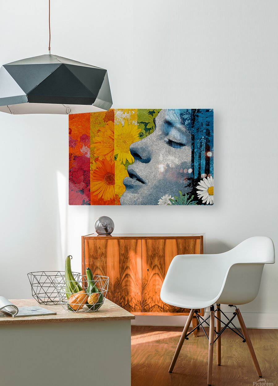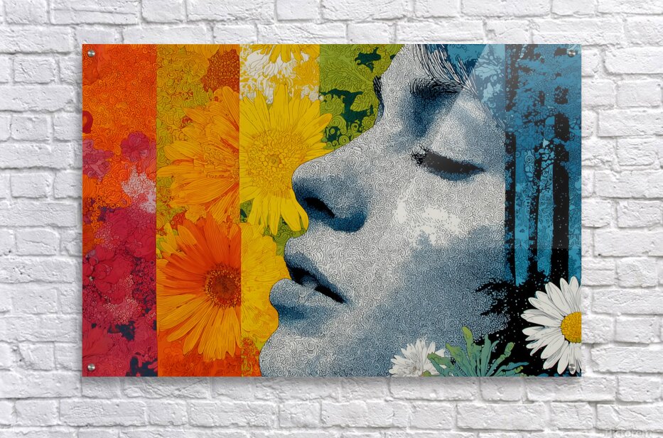 A serene side profile floats across vertical bands of color—red to blue—surrounded by oversized daisies and intricate linework. “Spectrum Daydream” blends pop-art punch with botanical detail, creating a focal point that reads instantly from across the room and rewards a closer look. It pairs easily with light woods, linen, and matte metals and lands beautifully above sofas, headboards, and studio desks. Choose canvas for a velvety matte feel; HD metal for glossy snap and razor detail; acrylic for glass-clear depth and a floating presence; or framed fine-art paper for a classic, low-glare finish. Printed with archival inks on premium materials in custom sizes, ready to hang or frame. Curated by Savage Art Prints.