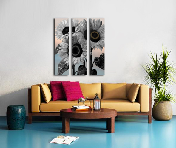 A trio of sunflowers unfurls in layered inks and delicate patterns, rendered in calm blacks and ivories with a hint of antique gold. The soft dawn backdrop keeps the composition airy and understated—perfect for bedrooms, hallways, and serene living rooms. Pair it with pale woods, linen, and stone for a polished, neutral look. Choose canvas for matte warmth; HD metal for gleaming precision; acrylic for glass-clear depth; or framed fine-art paper for a classic, low-glare finish. Printed with archival inks on premium materials in custom sizes, ready to hang or frame. Curated by Savage Art Prints.