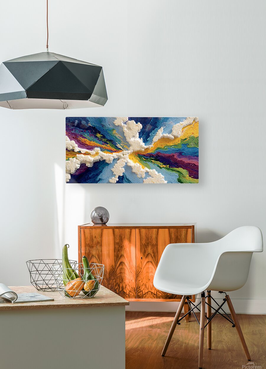 Ridges of thick, sculptural “paint” ripple like clouds breaking open to reveal a full spectrum of color. Spectrum Cloudburst delivers energy and movement—perfect as a bold focal point above a sofa, bed, or credenza. Choose canvas for a matte, tactile look that enhances the impasto; HD metal for glossy vibrance and razor-crisp detail; acrylic for glass-clear depth and luminous color; or framed fine-art paper for a refined, low-glare finish. Printed with archival inks on premium materials in custom sizes, ready to hang or frame. Curated by Savage Art Prints.