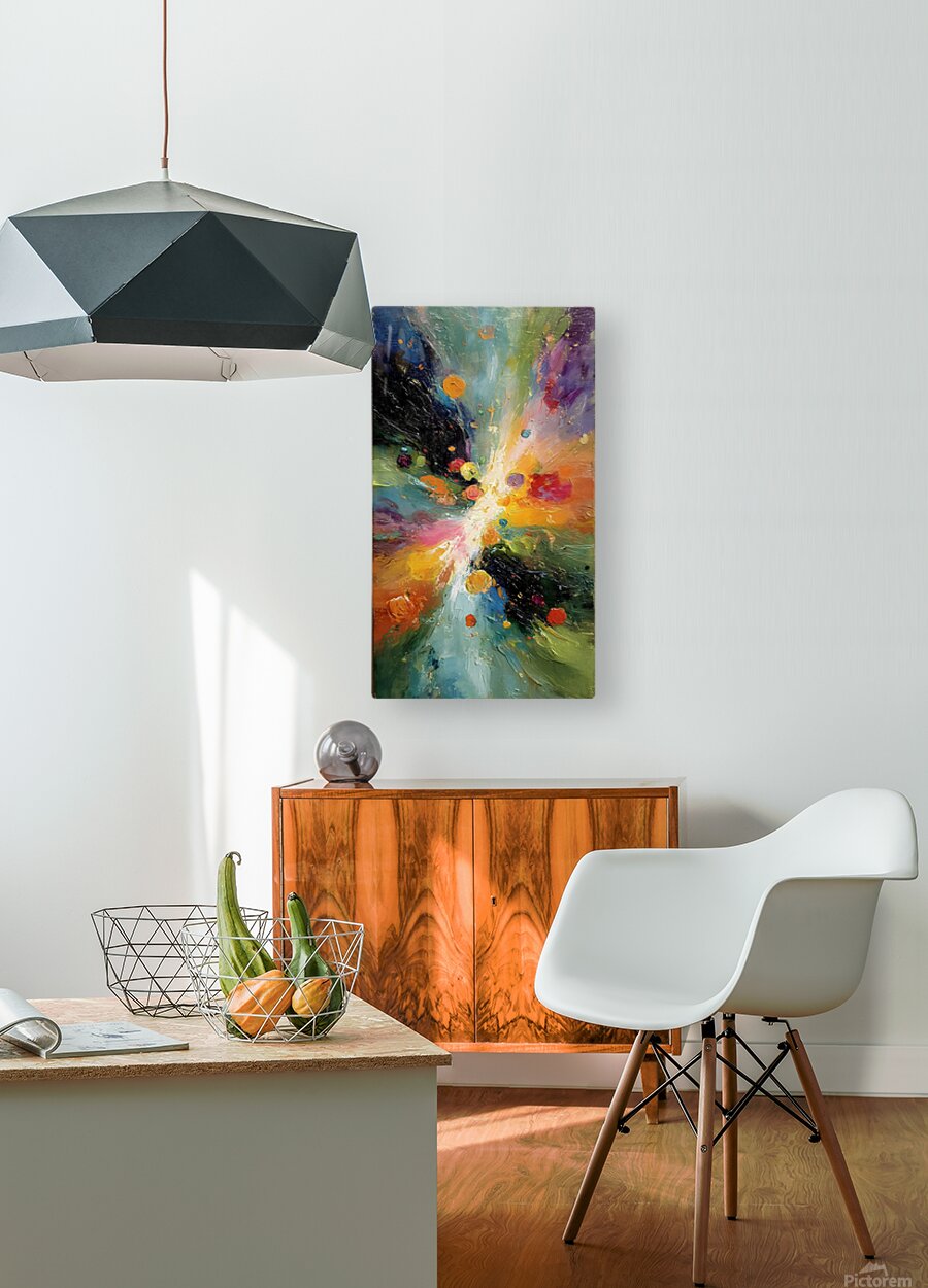 An inky center blossoms into radiant ribbons of yellow, coral, teal, and ultramarine—part flower, part supernova. Stellar Bloom delivers high-energy color and sweeping motion, perfect as a panoramic focal point above sofas, beds, or credenzas. Choose canvas for a velvety matte look that emphasizes the tactile swirl; HD metal for glossy punch and crisp detail; acrylic for glass-clear depth and luminous color; or framed fine-art paper for a classic, low-glare finish. Printed with archival inks on premium materials in custom sizes, ready to hang or frame. Curated by Savage Art Prints.