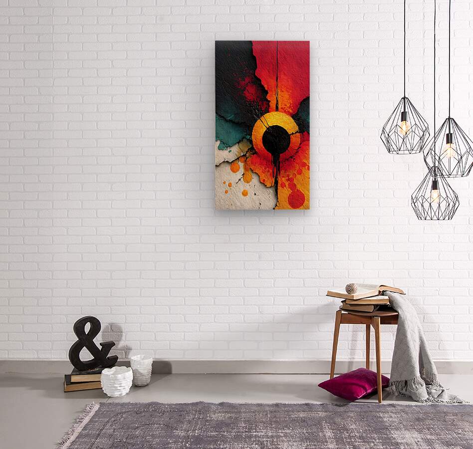 Solar Ring – Red Gold Textured Abstract Print  Wood print