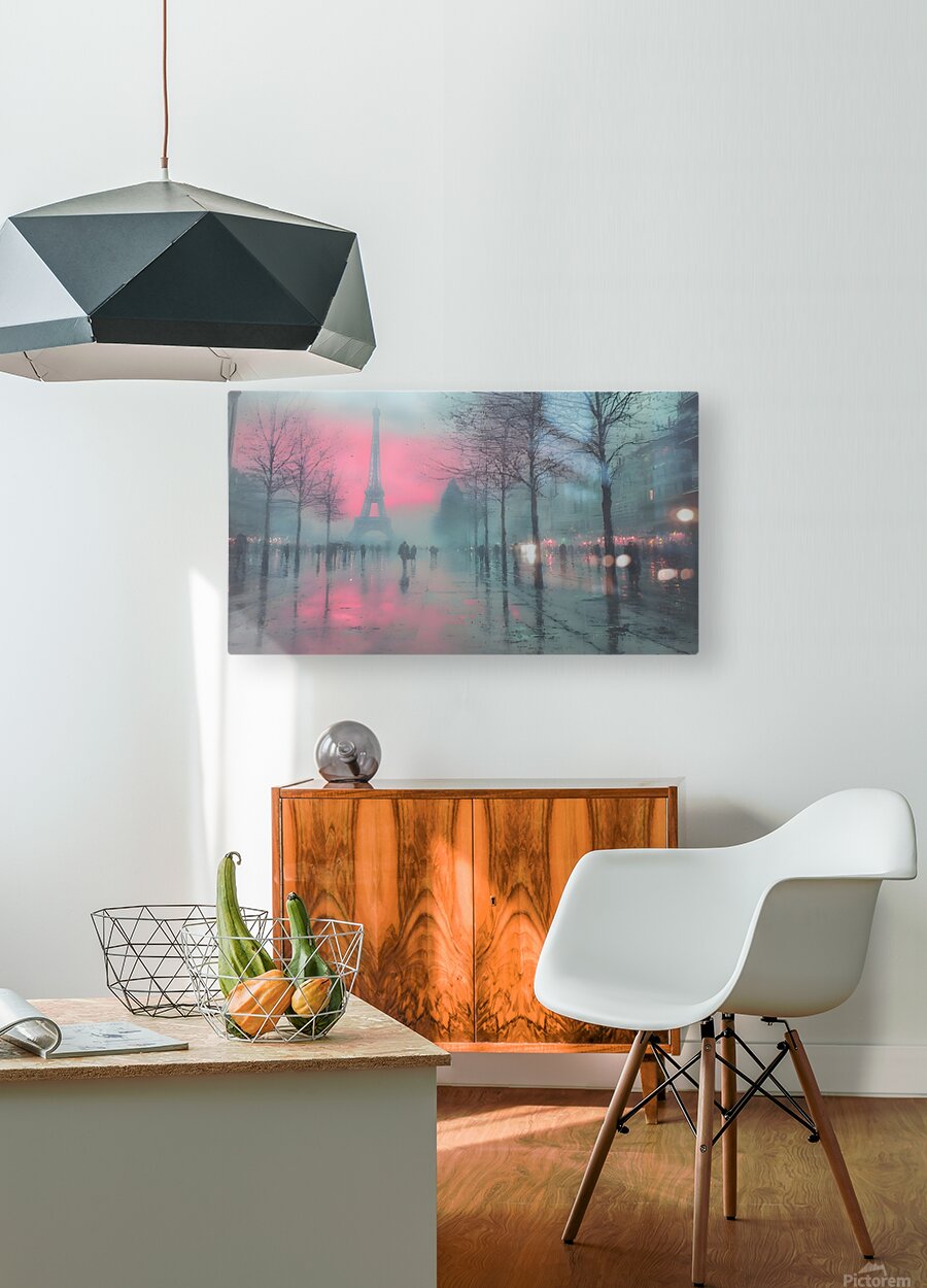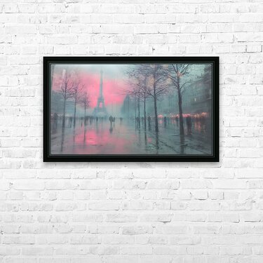Mist hangs over the Champ de Mars as amber streetlights scatter across rain-slick pavement and the Eiffel Tower glows through the fog. Loose impressionist brushwork softens edges into memory, evoking café warmth and late-night strolls. This timeless Paris scene adds romance to bedrooms, libraries, and entryways without overpowering the room. Choose canvas for velvety matte depth, HD metal for saturated glow and sleek gloss, acrylic for luminous clarity, or framed fine-art paper for museum poise. Printed with archival pigments on premium substrates and available in custom sizes, ready to hang or frame. Curated by Savage Art Prints.