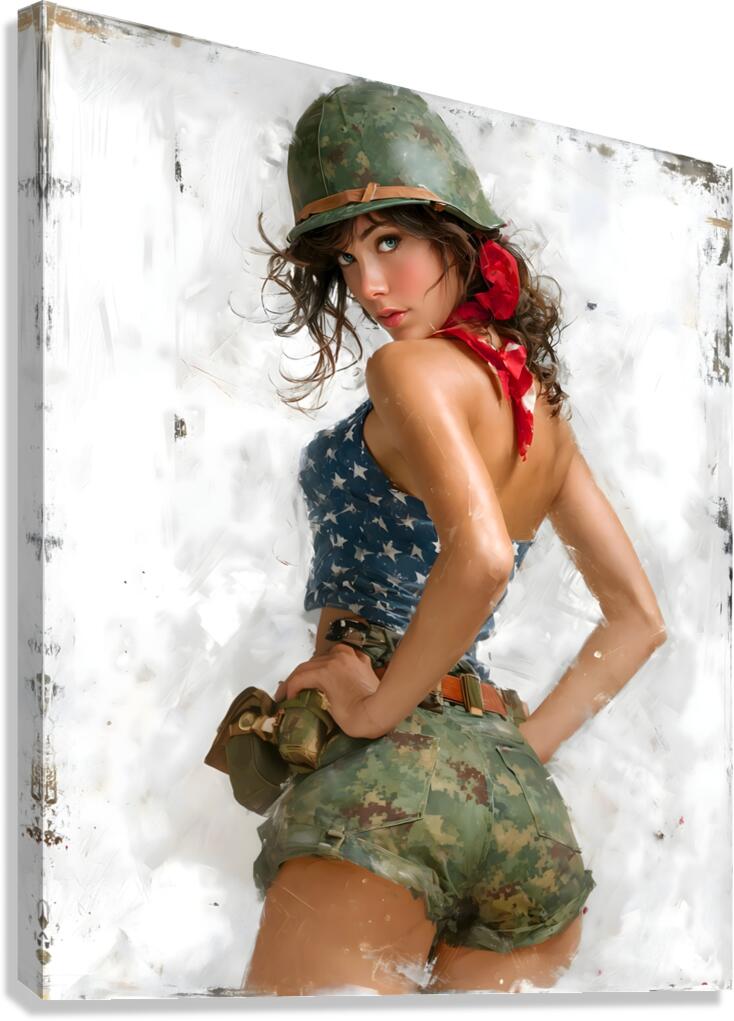Get this artwork "Liberty Pin Up – Vintage Army Muse Art Print" in a framed print.