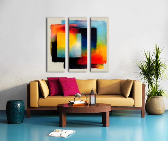 Floating “panels” of pigment overlap like stacked canvases—saffron, coral, and lagoon tones drifting across a field of soft neutrals. Subtle surface stippling and edge fades suggest hand-worked paint and depth without the weight. Hang above a sofa or console to anchor the room with confident geometry and lush color. Offered in canvas, HD metal, acrylic, or framed fine-art paper with archival inks and custom sizing. Curated by Savage Art Prints.