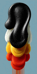Slick, candy-bright forms—red, amber, cream, and midnight black—pile into a whimsical totem that looks half-paint, half-confection. “Color Stack...[+]