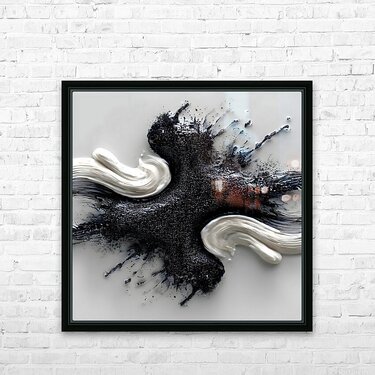 A dramatic burst of matte onyx collides with silky ivory sweeps, freezing impact and motion in one high-contrast composition. “Ivory & Onyx Collisio...[+]