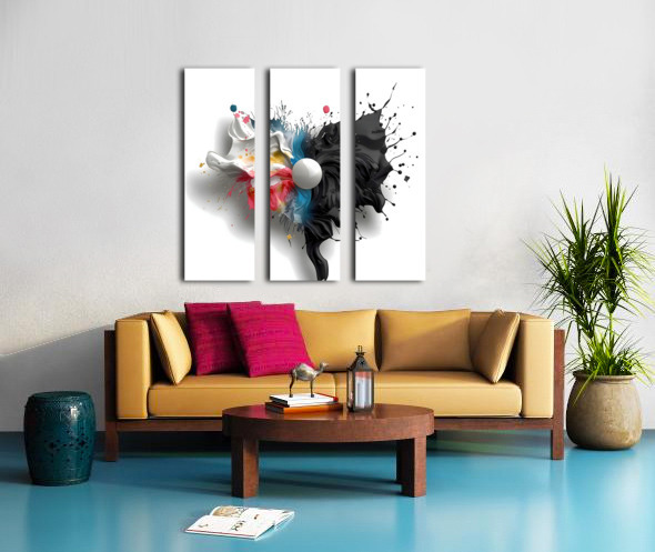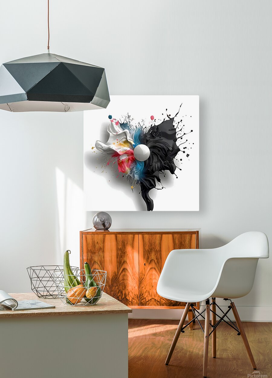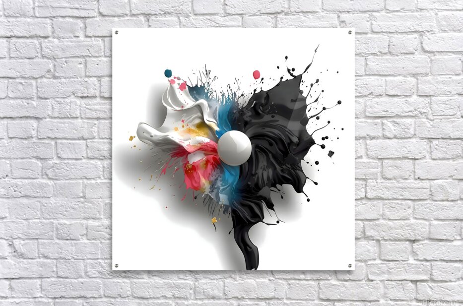 A glossy white orb anchors a collision of opposites—inky black and porcelain white—while ribbons of cyan, gold, and coral explode outward in high-speed splashes. “Contrast Singularity” delivers crisp edges, glassy highlights, and dramatic negative space for a look that feels both modern and cinematic. It’s a striking focal point above a sofa, console, or workspace where you want energy without clutter. Choose canvas for matte, gallery texture; HD metal for ultra-vivid color and sleek gloss; acrylic for glass-like depth and shadow play; or framed fine-art paper for a refined, low-glare finish. Printed with archival inks on premium substrates and available in custom sizes to fit your layout. Curated by Savage Art Prints.
