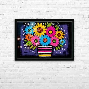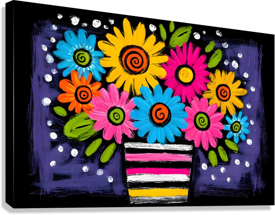 “Party in a Planter” bursts with stylized blooms, spirals, and dots—folk-pop energy in a striped pot on inky black. It’s joyful, graphic, and made to make you smile. Great for playrooms, kitchens, creative studios, or accent walls that need color with character. Canvas adds a soft, matte vibe; HD metal delivers billboard-bright color and sharp lines; acrylic gives glass-like depth and gloss; framed fine-art paper offers a clean, low-glare look. Produced with archival inks on premium materials in custom sizes. Curated by Savage Art Prints.
