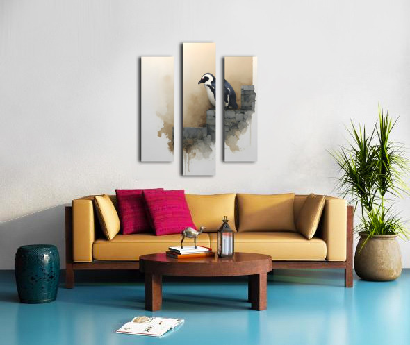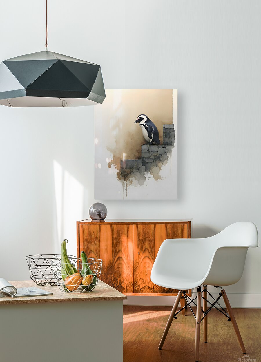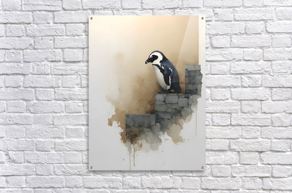 Steps of Solitude depicts a lone penguin poised on a crumbling stone wall, its quiet stance radiating grace and introspection. Soft watercolor textures and gentle tones evoke calm and reflection — a visual poem about resilience in stillness. Perfect for serene interiors, minimalist spaces, or collectors who appreciate quiet strength in simplicity. Printed with archival inks on museum-grade materials. Curated by Savage Art Prints.
