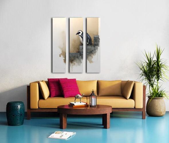 Steps of Solitude – Penguin on Stone Wall Print Canvas print