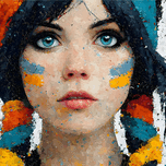 Who Told You? captures the unspoken. Her piercing blue eyes hold defiance and vulnerability, framed by vivid strokes of orange and turquoise that hint...[+]
