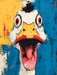 Quack Attack brings chaos and laughter to life. A wild, wide-eyed duck painted in bold textures and explosive colors captures humor, energy, and madne...[+]