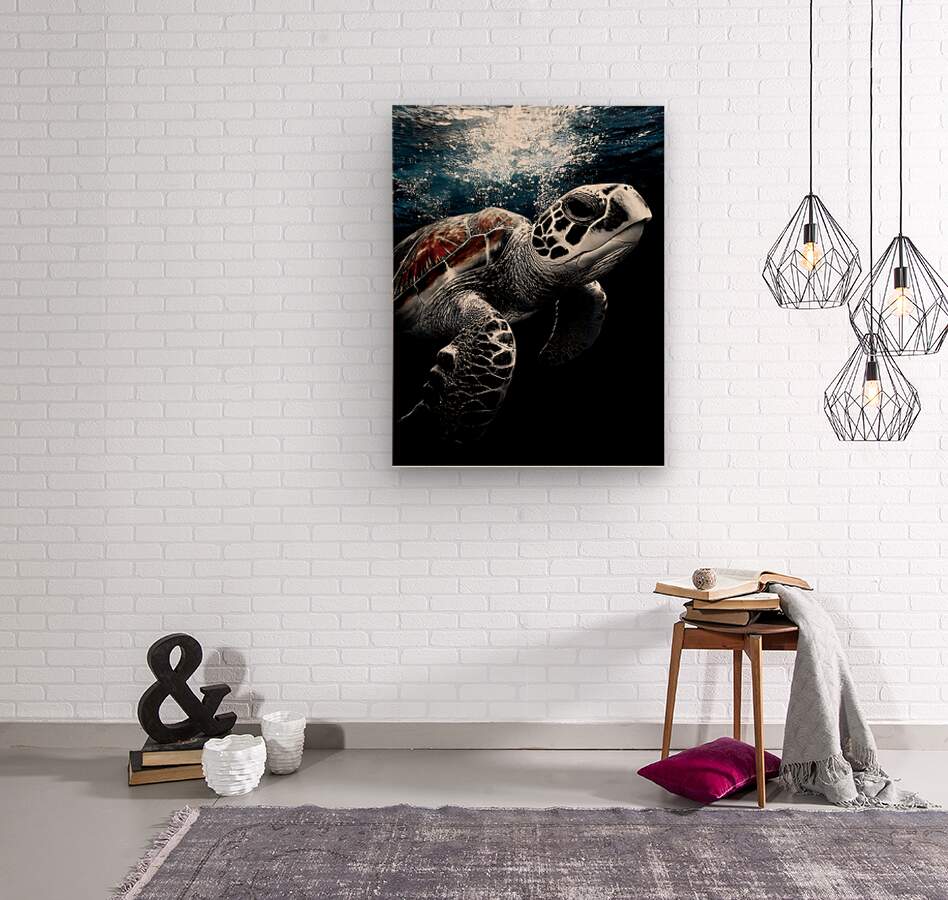 Depthlight captures the moment a sea turtle ascends toward the shimmering surface — a symbol of endurance and grace. Illuminated by fractured beams of light, it radiates timeless strength and serenity, perfect for modern and coastal spaces alike. Curated by Savage Art Prints.