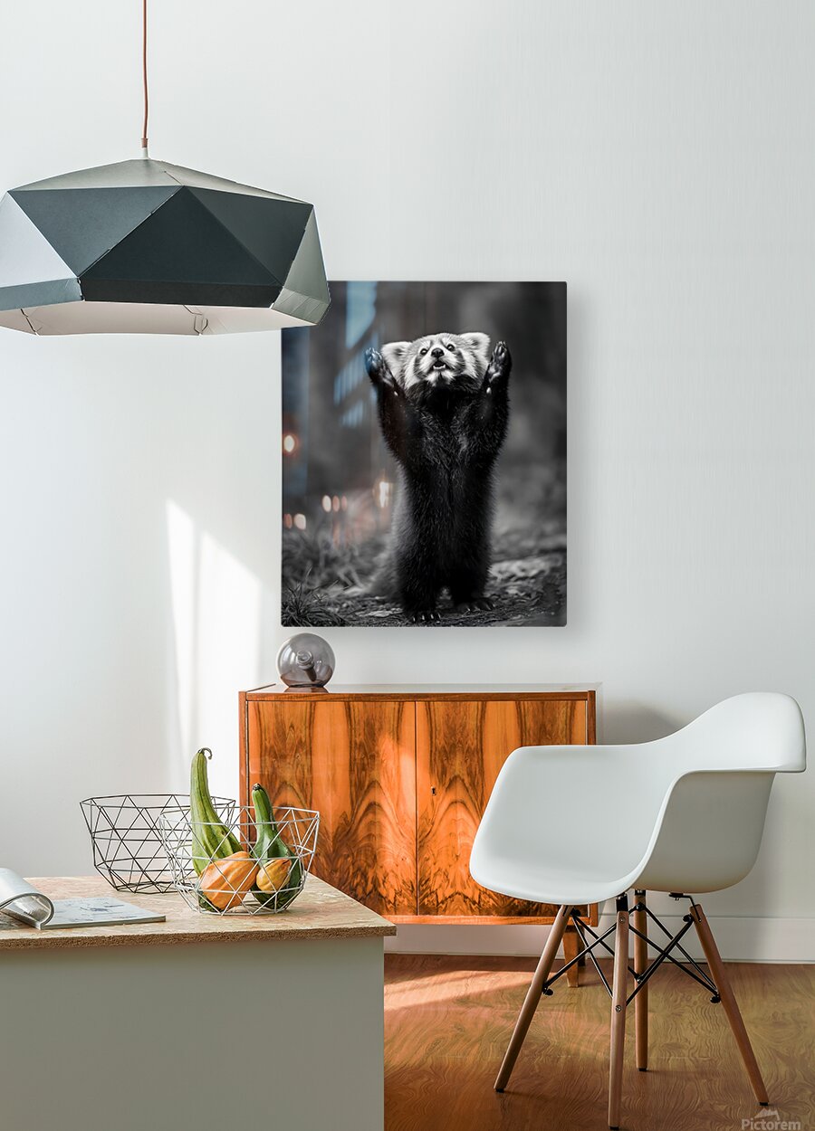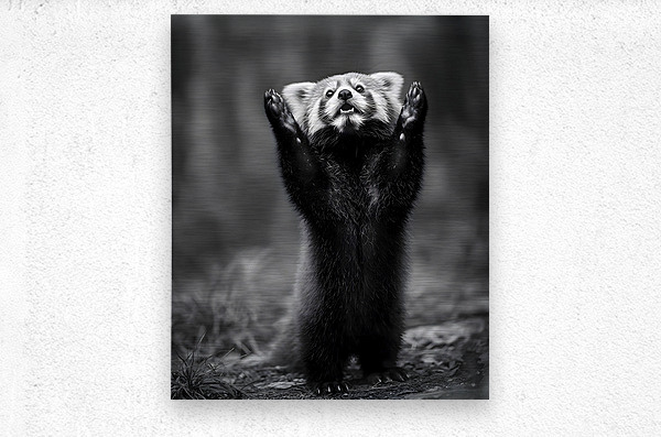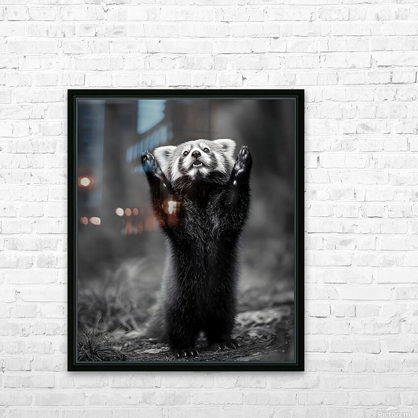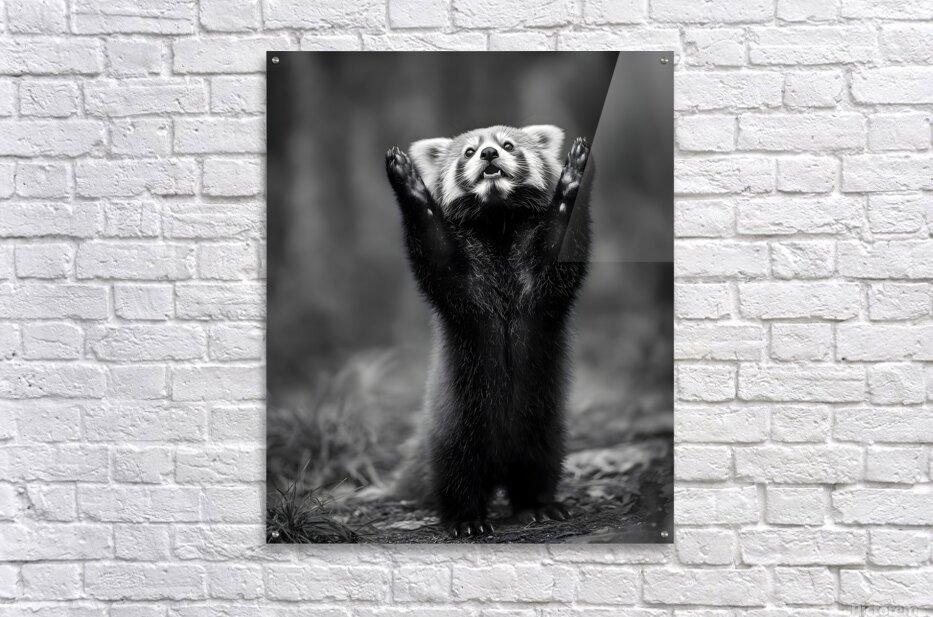 Standing Ovation captures the playful curiosity of a red panda reaching skyward, frozen in a moment of wonder. The detailed monochrome tones create an unforgettable study in expression and texture — equal parts adorable and sophisticated. Curated by Savage Art Prints.