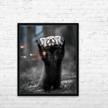 Standing Ovation captures the playful curiosity of a red panda reaching skyward, frozen in a moment of wonder. The detailed monochrome tones create an...[+]