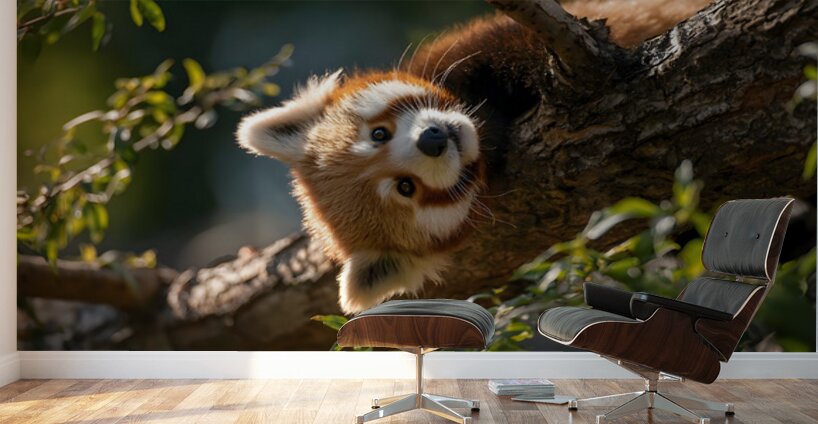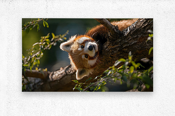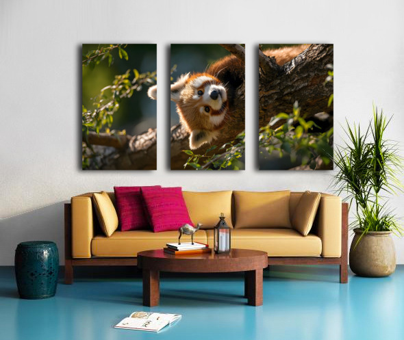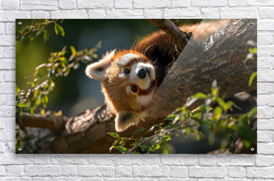 Forest Acrobat captures a red panda mid-climb, eyes bright and fur illuminated by filtered sunlight. Its playful energy and vivid contrast bring life to any space, from modern living rooms to cozy nature-themed interiors. A balance of innocence and wild spirit, this piece radiates charm and vitality. Curated by Savage Art Prints.