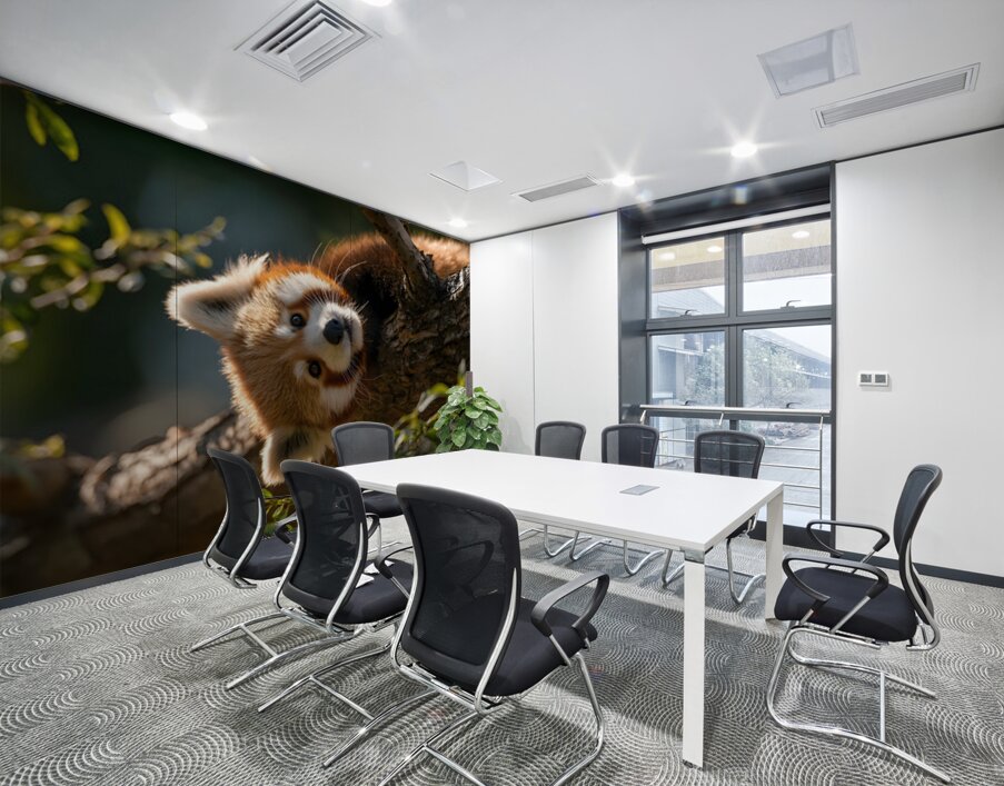 Forest Acrobat captures a red panda mid-climb, eyes bright and fur illuminated by filtered sunlight. Its playful energy and vivid contrast bring life to any space, from modern living rooms to cozy nature-themed interiors. A balance of innocence and wild spirit, this piece radiates charm and vitality. Curated by Savage Art Prints.