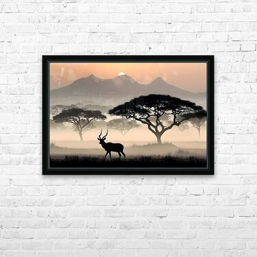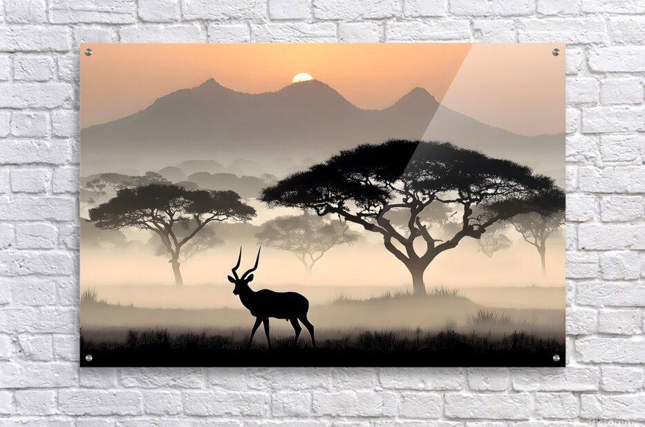Whispering Plains presents the Saola emerging from morning mist — a rare glimpse of a near-mythic creature. Its soft silhouette against a hazy landscape evokes reverence for nature’s quiet and fragile beauty. Curated by Savage Art Prints.